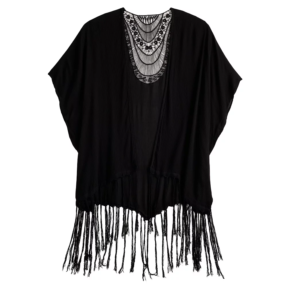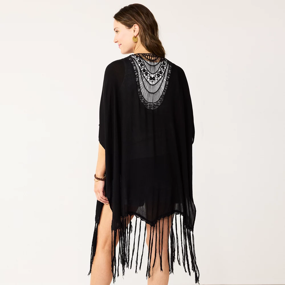 Layer on the style with this beautiful Women’s Sonoma Goods For Life® Crochet Back Fringe Ruana.